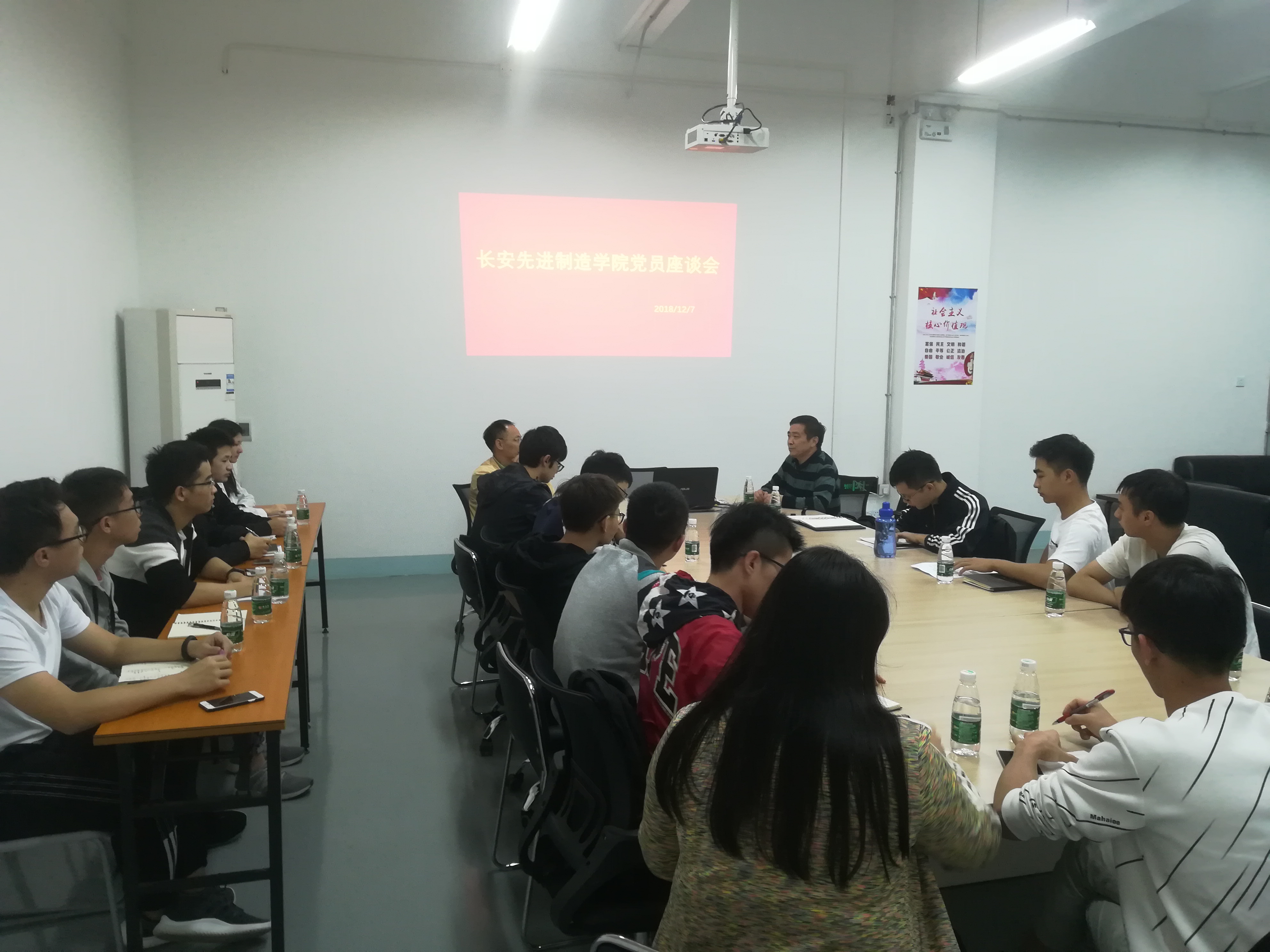 为深入学习贯彻习近平总书记视察广东重要讲话精神,2018年12月7日下午,williamhill在长安williamhill教学楼211会议室召开员工党员座谈会。出席人员包括机械工程公司党总支书记钟守炎教授、党总支副书记陈举铭老师、辅导员罗嘉楠老师和2015级全体员工党员。