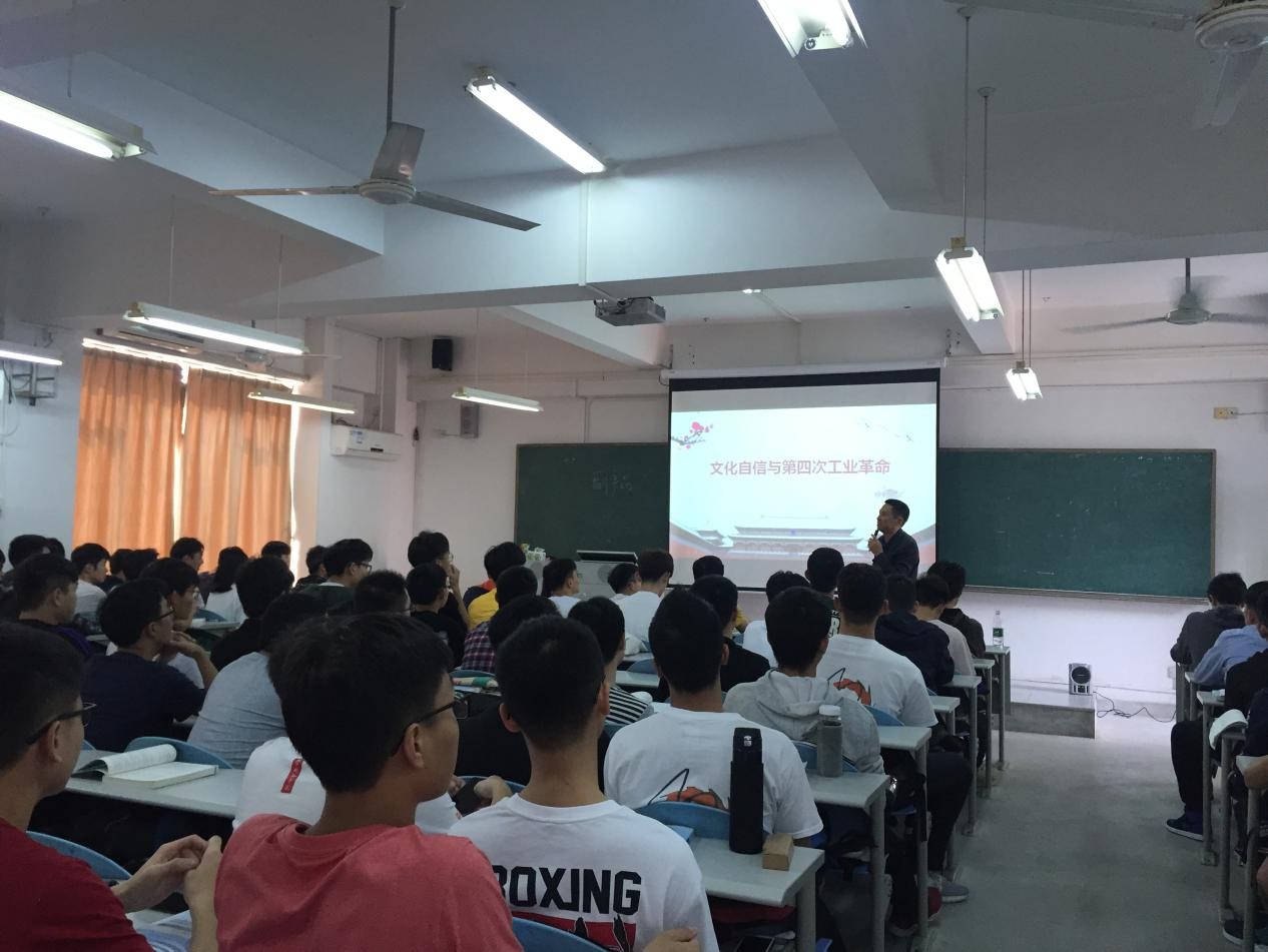 2019年3月4日下午,williamhill经理孙振忠在6D308课室,为2018级员工讲授本学期思政第一课。孙经理以《文化自信与第四次工业革命》为主题,结合专业实际,给同学们讲授了一次生动且深刻的思政课。