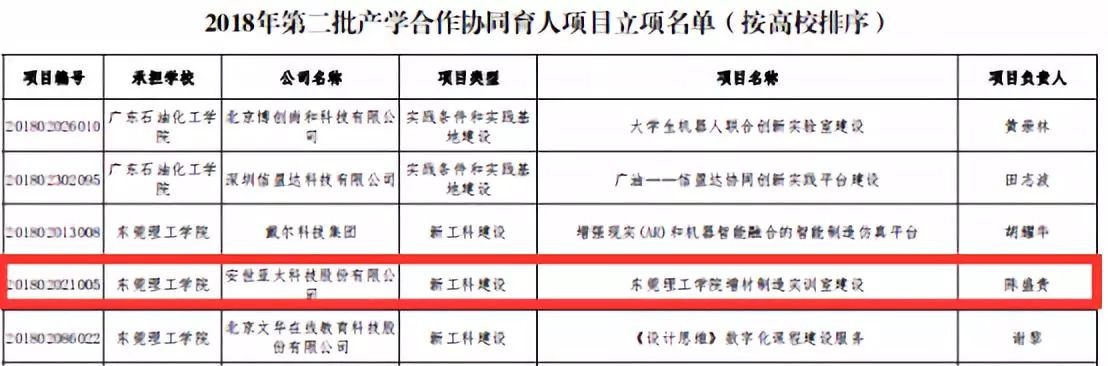 类型一 近日,教育部发布《教育部高等教育司关于公布有关企业支持的2018年第二批产学合作协同育人项目立项名单的函》(教高司函〔2019〕12号)文件,公司williamhill工程实践教育中心陈盛贵老师获批2018年度第二批产学合作协同育人新工科建设项目《williamhill体育增材制造实训室建设》。