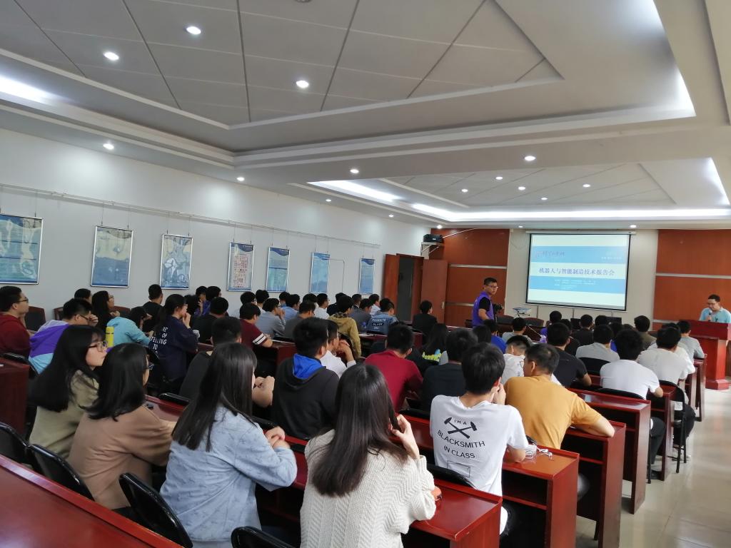报告会开始,丁教授从智能制造技术、共融机器人、其所在实验室近期的研究工作以及国家数学化设计与制造创新中心四方面循序渐进地为同学们讲解机器人与智能制造技术的概念以及发展历程。从数字制造、机器人发展、智能制造技术的三方面深入浅出地为同学们介绍智能制造技术与机器人的发展与应用等问题,强调数字化基础的重要性。从技术应用的角度强调员工应提高自身的专业知识与实践能力,并对机器人与智能制造技术的未来发展作出展望。