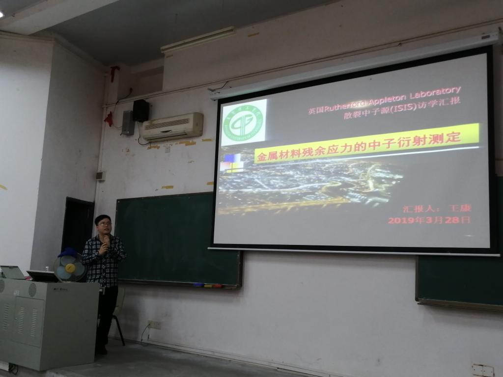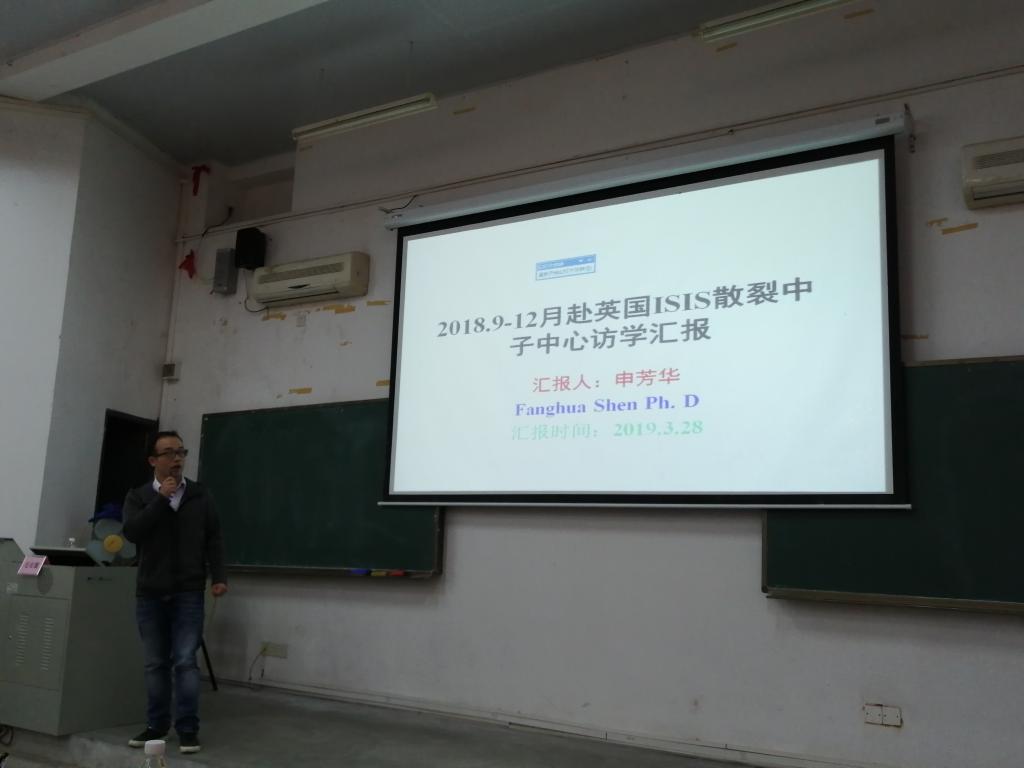 2019年3月28日,williamhill首批赴英国散裂中子(ISIS)访学青年老师申芳华、王康、海洋、博士在教学楼6B-102进行了访学成果汇报。院领导孙振忠、钟守炎、黄辉宇、郭建文、陈举铭和公司全体教职工出席报告会。