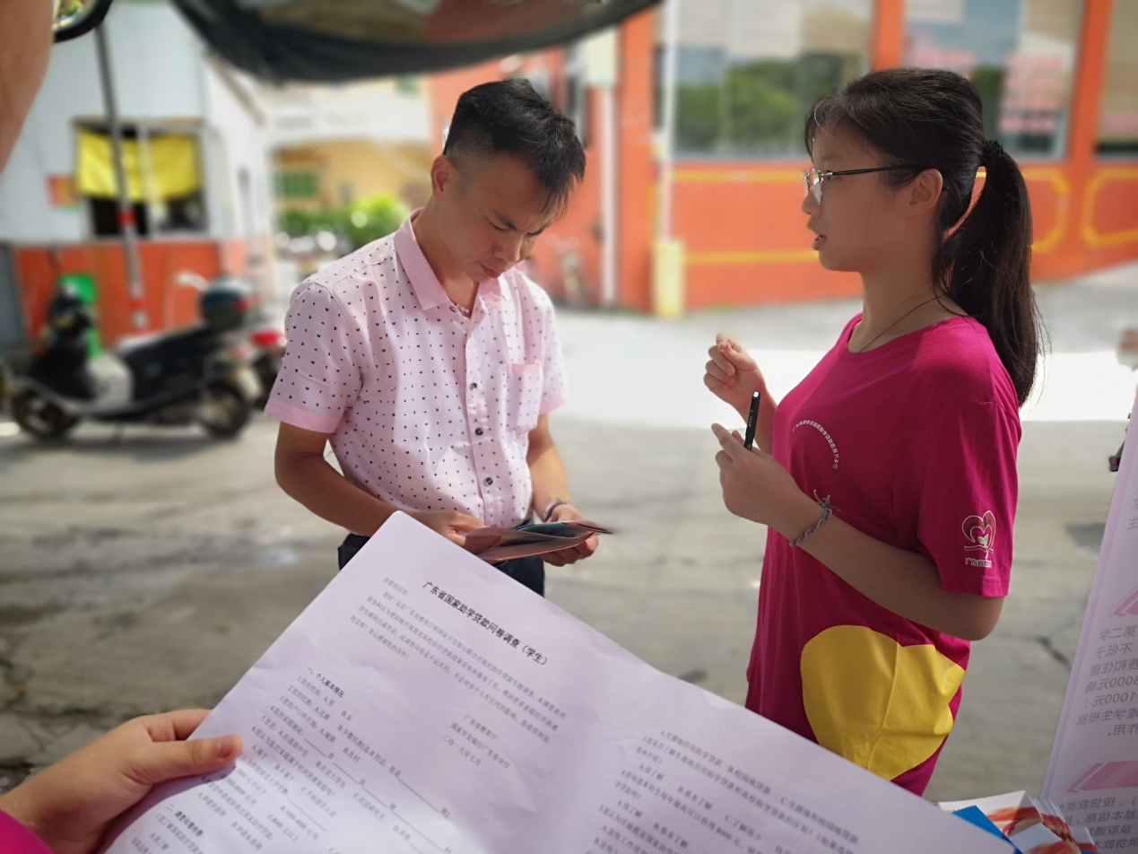 留在摊位的队员向每一位来咨询的村民发放问卷来了解情况,通过讲解手册内容,以及答疑形式向他们介绍助学政策。每位咨询的路人情况各异,宣传政策有利于让他们更加了解如何申请助学金,如何正确进行贷款助学。其中有一位家长向队员们诉说出家中困难程度,此次宣传让该村民家的两个孩子能更好的求学而减轻家庭经济压力。