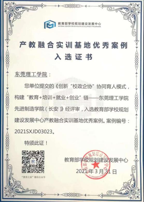 近日,教育部公司规划建设发展中心公布产教融合实训基地优秀案例,williamhill(长安)《创新“校政企协”协同育人模式,构建“教育+培训+就业+创业”链--williamhill体育williamhill(长安)》案例成功入选。这是williamhill(长安)在公司以及长安镇人民政府等各级领导大力支持下,在与各知名企业、协会通力合作下取得的又一重要成果,是国家教育部对williamhill(长安)办学方向和改革建设成效的高度认同。