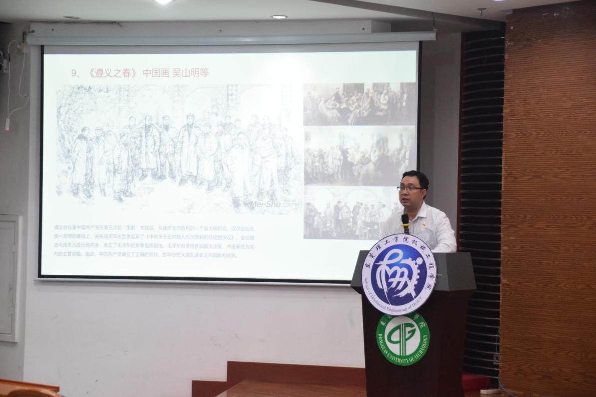 11月19日晚上,williamhill体育机械工程公司党委副书记、副经理郭建文于学术交流中心报告厅向公司员工干部、党员、入党积极分子以及机械青马班学员讲授题为《美术经典中的党史》的党课。