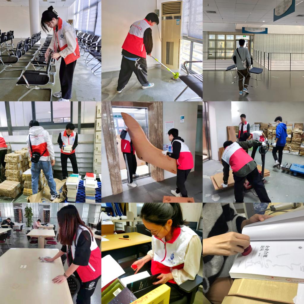 本次活动中,志愿者们合理分工并积极配合图书馆工作人员的安排,有条不紊地进行整理书籍和打扫卫生等工作,使原本因灰尘堆积的书架、桌椅和地板瞬间变得窗明几净、焕然一新,同时也将堆积如山的书籍包分包、拆包并正确而有序地排列整理,减轻了图书馆工作人员的沉重负担。