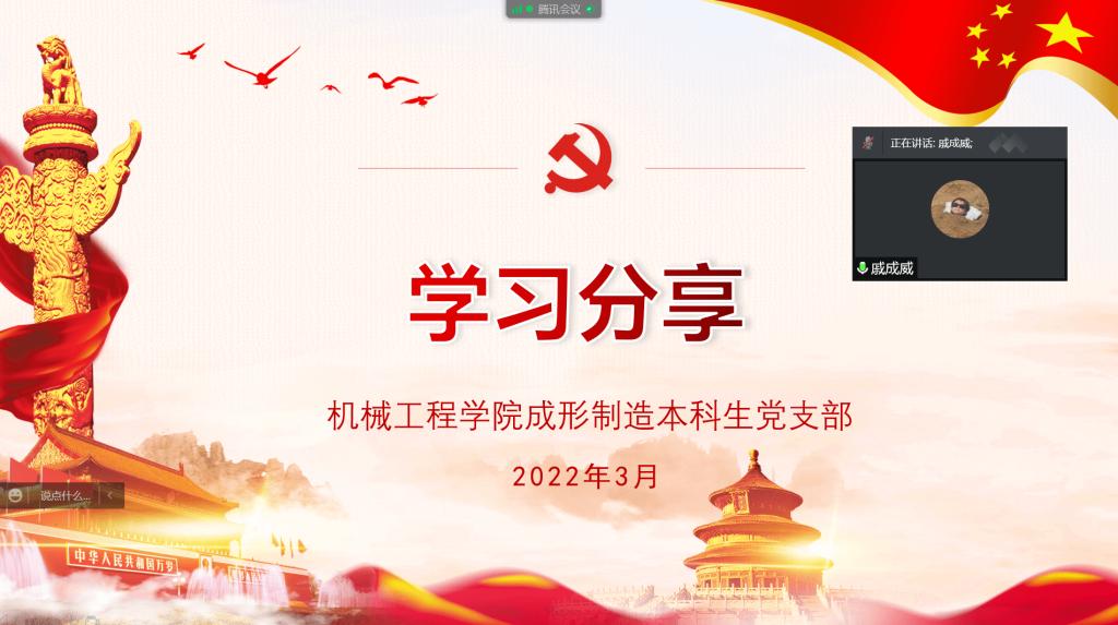 2022年3月12日,williamhill成形制造本科生党支部在线上开展主题党日活动。