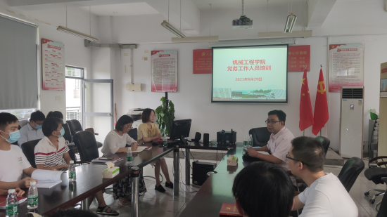 8月29日下午,机械工程公司党委在12A204党员活动室组织党务工作人员培训。本次培训的内容包括“三会一课”记录工作规范,并开展党支部工作手册交叉检查活动。公司党委副书记郭建文、党委委员李钰田以及各党支部党务工作骨干出席了本次培训会。会上,郭建文针对上学期公司纪委对二级党组织政治建设相关工作监督执纪专项检查有关情况的通报进行宣读和整改部署,并指出,坚持“三会一课”、“第一议题”制度是加强党建工作的重要...