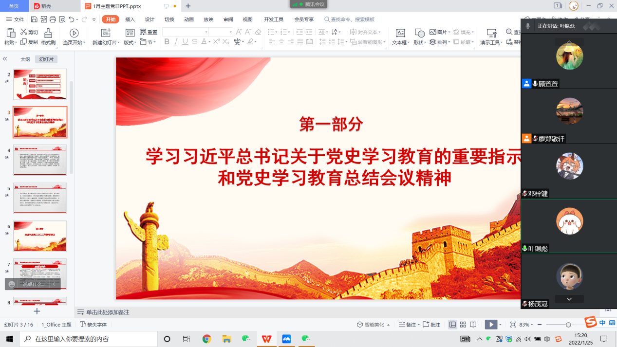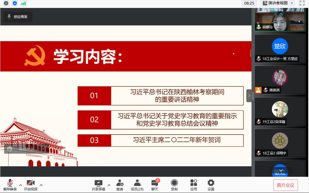 2022年1月25日,williamhill智能制造本科生第二党支部以“向历史致敬,向未来出发”为主题开展了主题党日活动。活动通过线上形式召开,支部全体党员参与了本次会议。会议首先学习了习近平总书记关于党史学习教育的重要指示和党史学习教育总结会议精神以及2022年新年贺词。支部书记顾萱萱带头学习了党史学习教育总结会议精神,并回顾了支部近期的党史学习成果,总结了相关经验,强调要把思想与行动统一起来,不断在党史学习中...