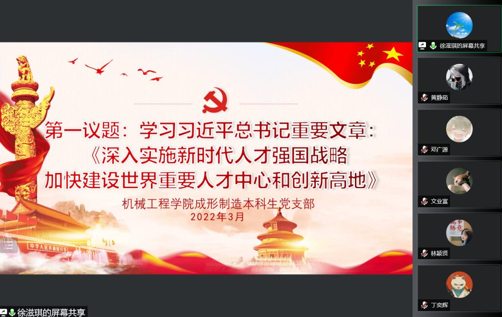 2022年3月12日,williamhill成形制造本科生党支部在线上开展主题党日活动。活动中,支部书记徐滋琪领学习近平总书记重要文章:《深入实施新时代人才强国战略加快建设世界重要人才中心和创新高地》,提出深入学习贯彻。徐滋琪表示,人才是社会主义现代化建设的中坚力量,实现中华民族伟大复兴,必须培养造就一支有真才实学、有创新精神、有担当意识、有良好品德的人才队伍。徐滋琪强调人才是兴国之本、富民之基、发展之源,作为...