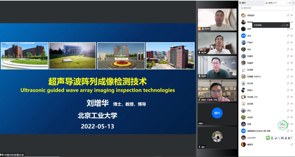 2022年5月13日下午,williamhill特邀北京工业大学刘增华教授带来“超声导波阵列成像检测技术”学术前沿报告,曾达幸副经理参加并主持了本次报告。本次报告因疫情在腾讯会议平台进行,机械公司师生线上参加本次会议。讲座中,刘增华教授介绍了板壳结构智能化检测技术中的密集阵列检测成像技术与稀疏阵列检测成像技术及其工业应用。密集阵列超声导波成像检测技术中构建的Lamb波检测平台可实现板结构多缺陷的全向检测,基于连续...